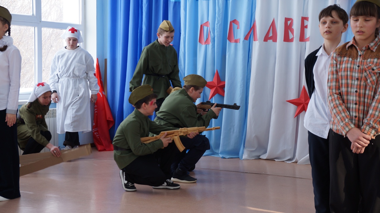Фрагменты выступления в школьном фестивале "О Родине, о подвигах, о славе", посвященному приближающемуся 80-летию со Дня Великой Победы и Году защитника Отечества! Мы с ребятами долго репетировали, а наши родители помогали нам с реквизитом и костюмами))) |